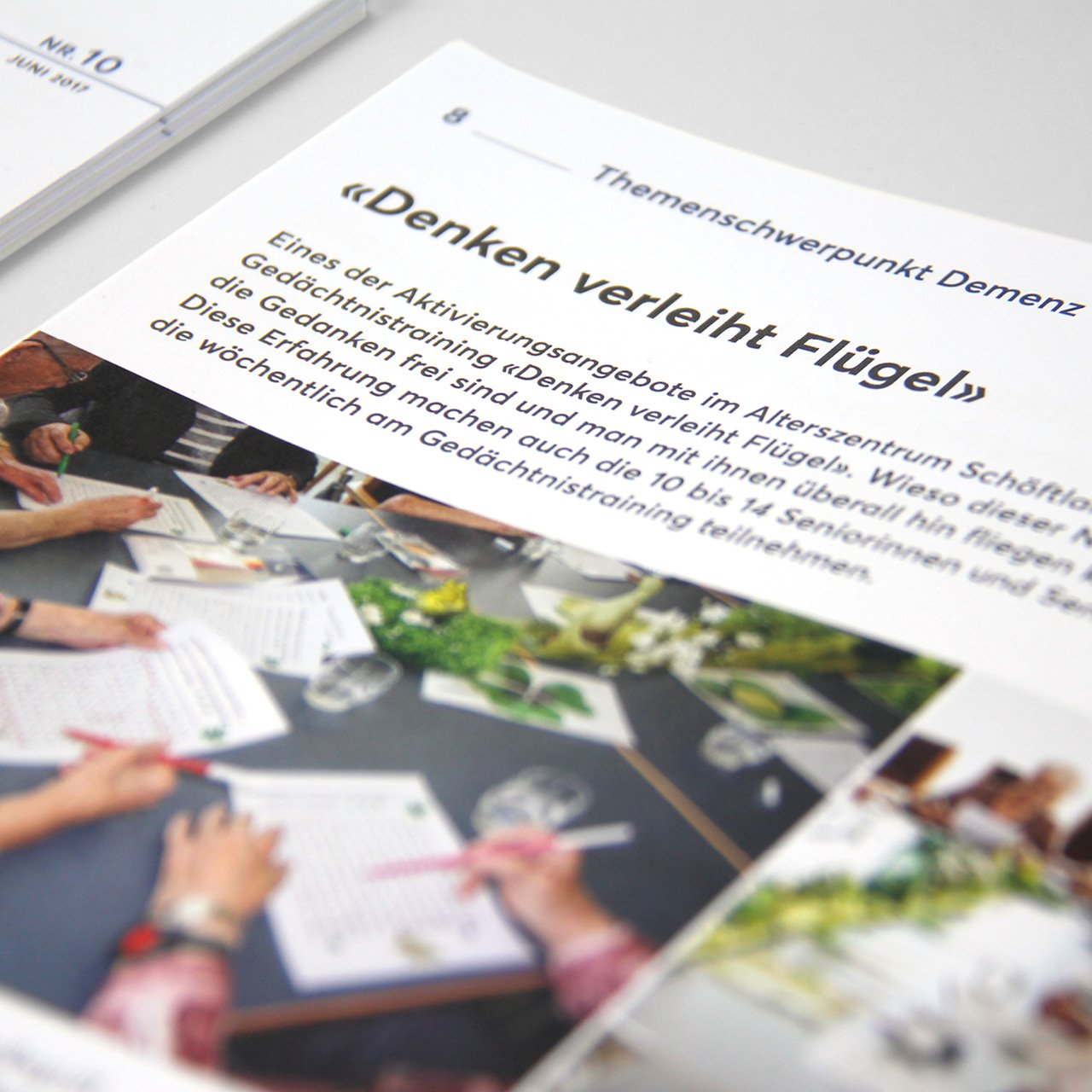 Das Alterszentrum Schöftland ist ein regionales Kompetenzzentrum für Pflege, Betreuung und Wohnen im Alter. Zusammen mit dem neuen CEO durften wir das zweimal jährlich erscheinende Hausmagazin komplett überarbeiten.