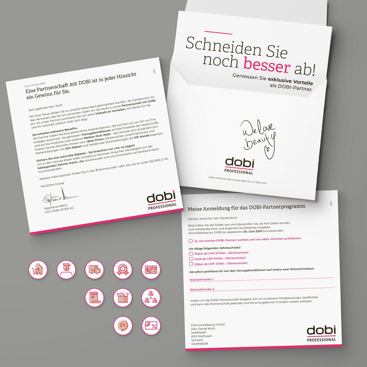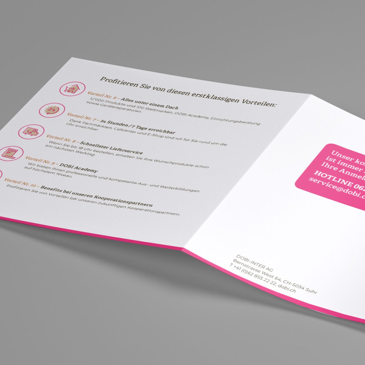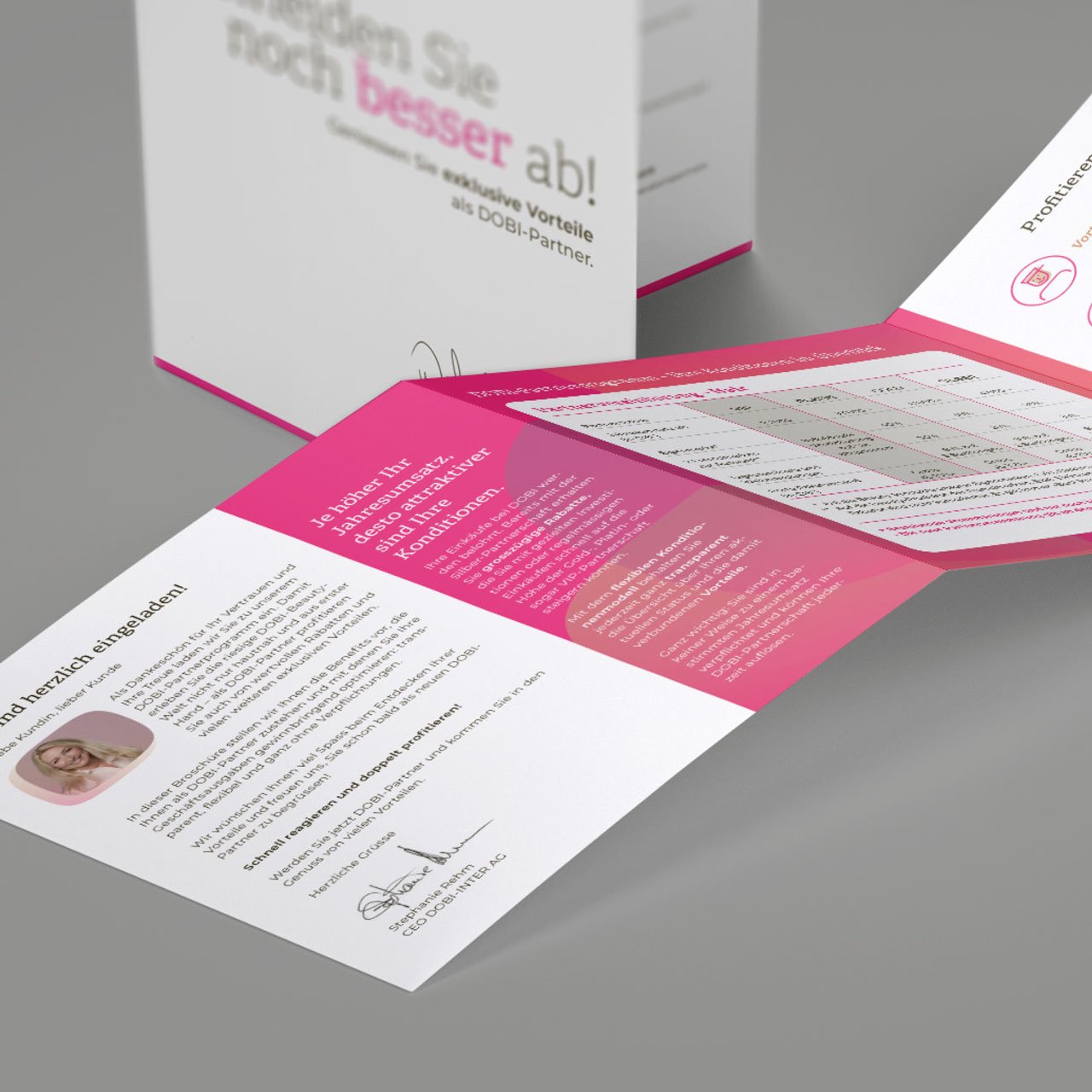 Um die treuesten B2B-Kunden in ein Partnerprogramm einzuladen, konzipierten wir ein elegantes Directmailing. Damit es aus der täglichen Flut von Briefsendungen heraussticht, wurde ein quadratisches Format gewählt. Ebenfalls wurde das Layout durch neu illustrierte Icons ergänzt, wobei sich das kräftige Pink wie ein roter Faden durch das Gesamtlayout zieht. Das Directmaiing bestand aus einem Anschreiben, Falzfolder, Anmeldekarte, sowie einen Couvert und wurde in den Sprachen Deutsch und Französisch realisiert.