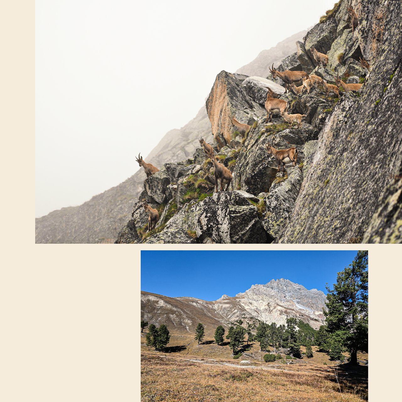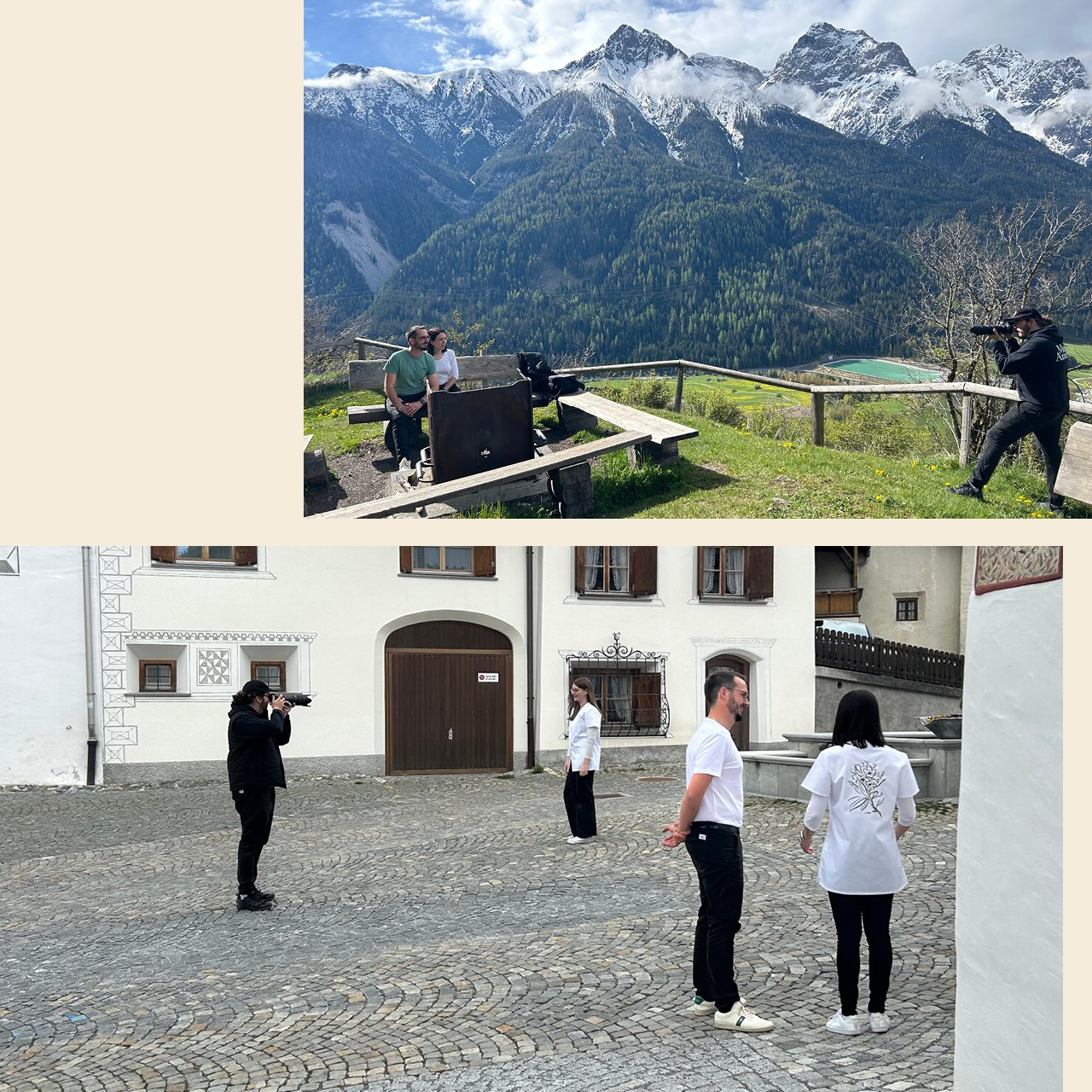 Durch die Übernahme der Drogaria Mosca und die Überführung in die neue Drogaria Stadler wurde auch die gesamte Bildwelt neu aufgesetzt und fotografiert. Wir waren in Scuol vor Ort und haben die Team- wie auch die Umgebungsaufnahmen an einem Tag machen können. Die Fotografie erfolge durch Roman Gaigg mit Kamera und Drohne, die Nachbearbeitung lag bei uns. Weil die hauseigenen Produkte vor Ort selber hergestellt werden, war es uns auch wichtig, in der Bildwelt die dafür nötige Authentizität zu erhalten und die tatsächlichen Orte zu zeigen, wo die Ingredienzen auch gewonnen werden.