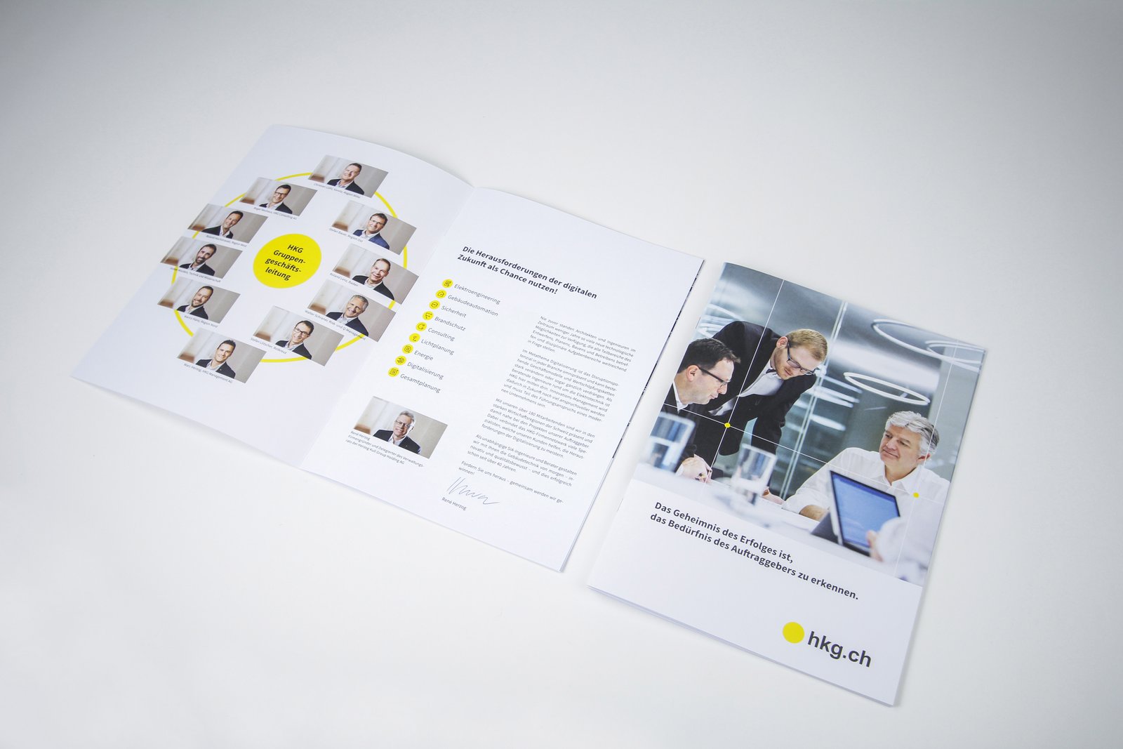 Die bekannte Aarauer Ingenieurfirma hkg.ch (ehemals Herzog Kull Group) ist einer der schweizweit führenden Player im Bereich Elektroengineering, Gebäudeautomation, Brandschutz, Lichtplanung und mehr. Die von uns komplett neu gestaltete Broschüre gibt nicht nur einen Einblick in die breite Dienstleistungspalette, sondern stellt auch die wichtigsten Köpfe, Kompetenzen, Kunden und Projekte vor.