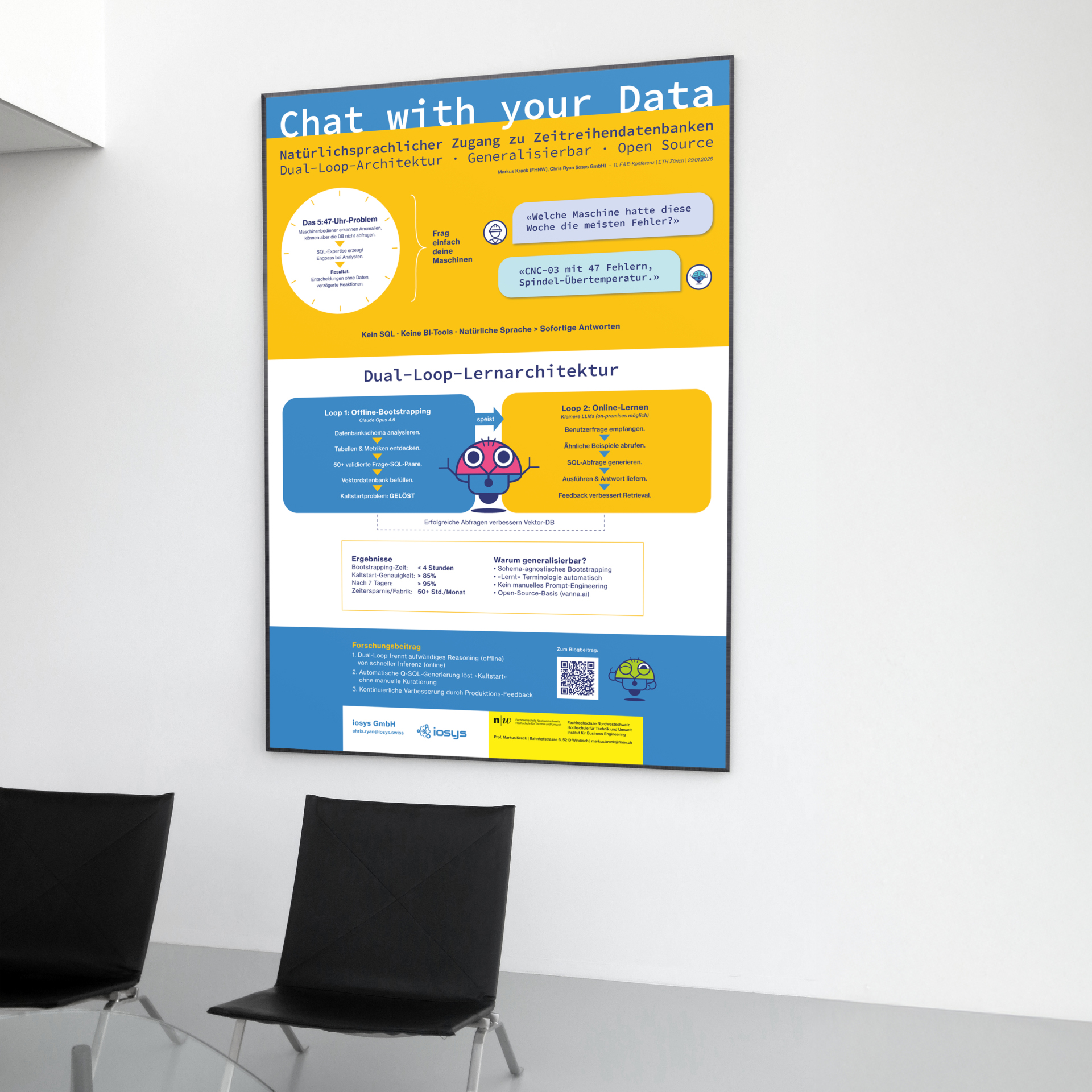 Diese und andere Fachinformationen galt es, komprimiert mit einer zentralen Botschaft als zwei Messeplakate für iosys umzusetzen. Natürlich durften entsprechende Abläufe und Daten nicht fehlen, weil die Plakate ebenso für fachliche Gespräche am Messestand dienten.