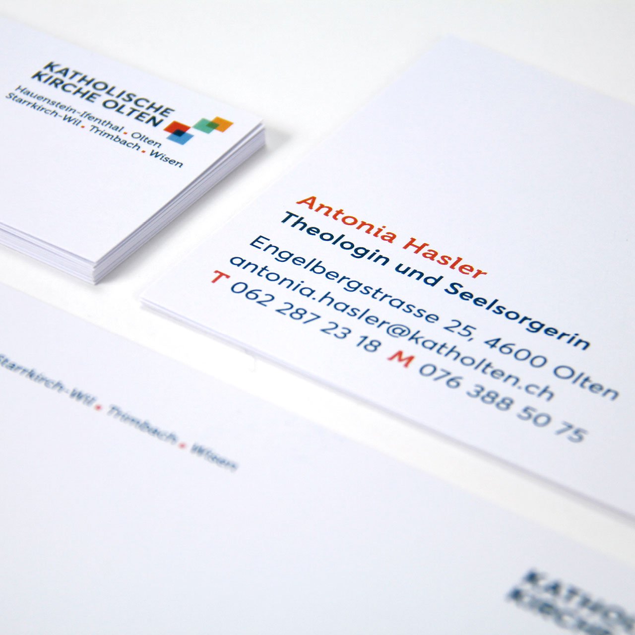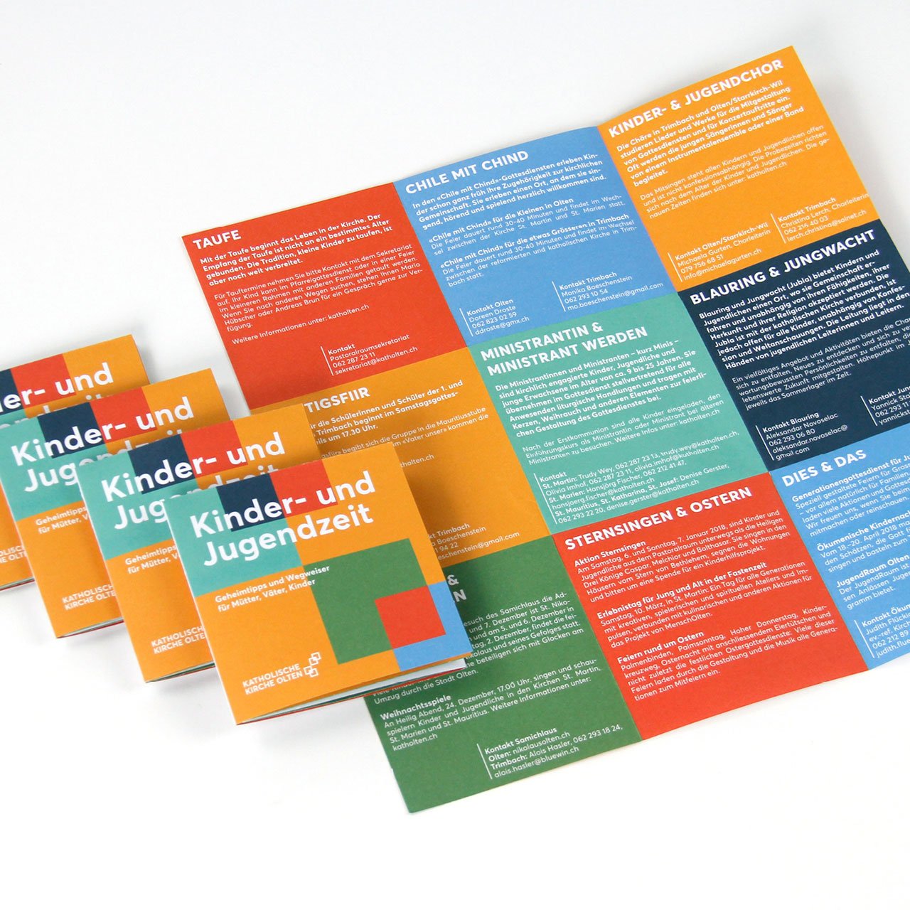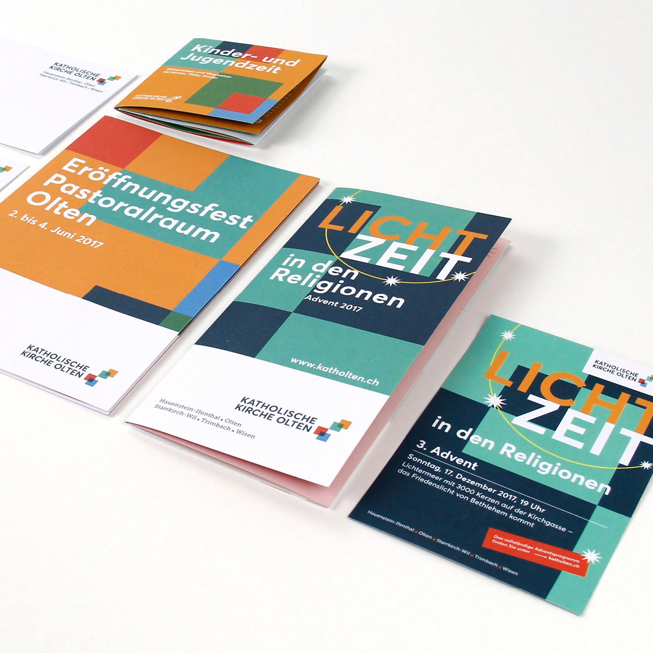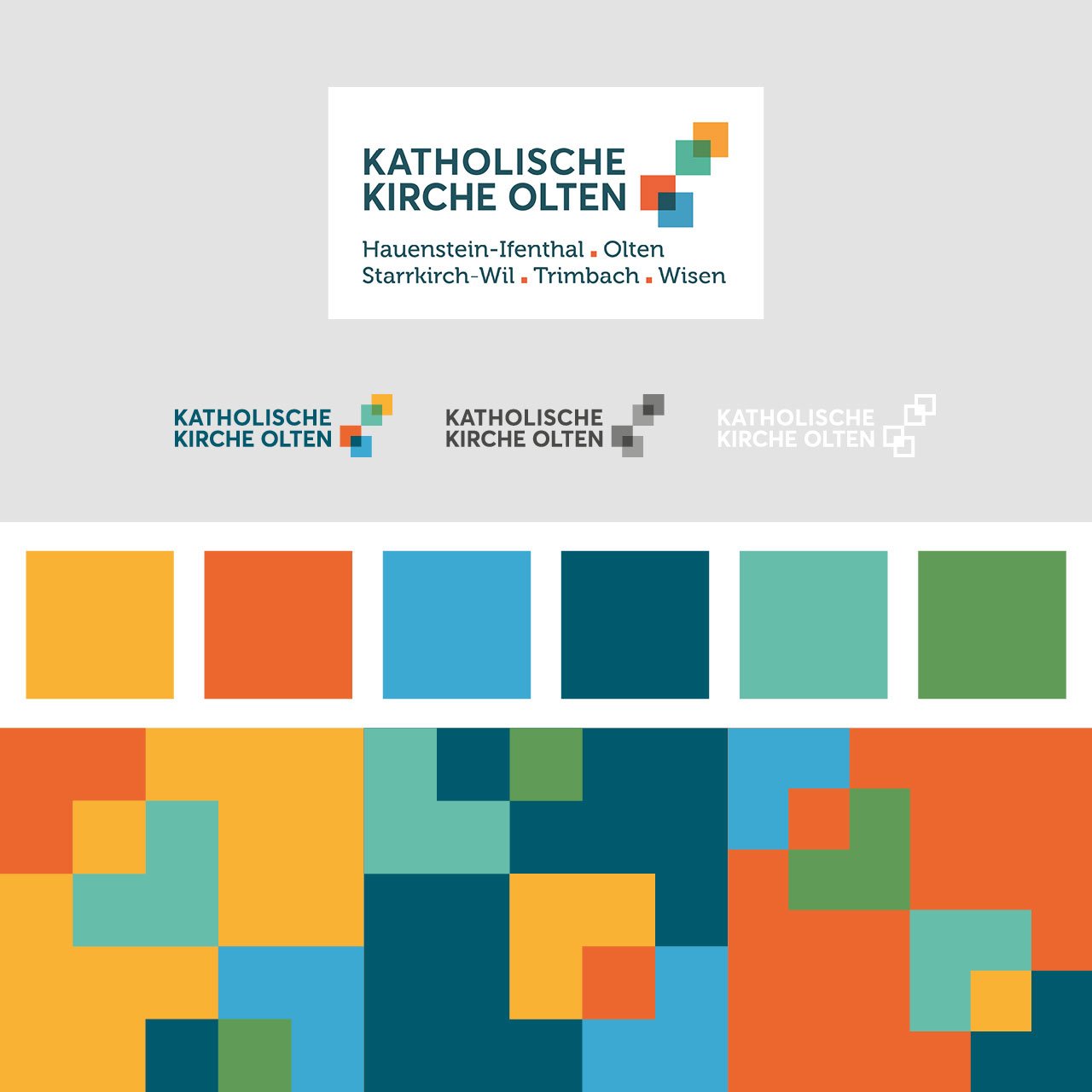 2017 haben sich fünf Pfarreien der Region Olten zur Katholische Kirche Olten zusammengeschlossen. Das von uns kreierte, neue Corporate Design symbolisiert den Zusammenschluss auf eine spielerisch frische Weise.