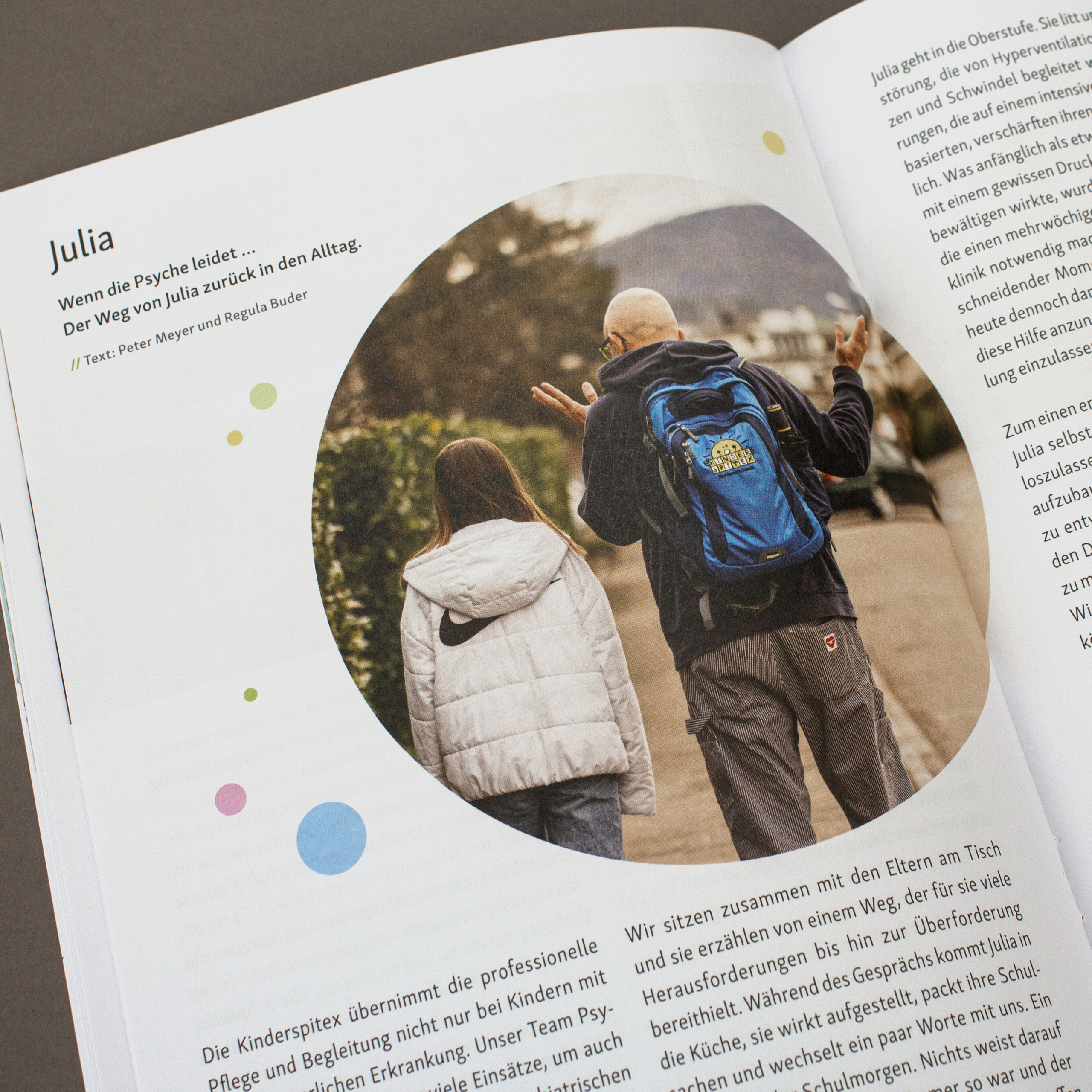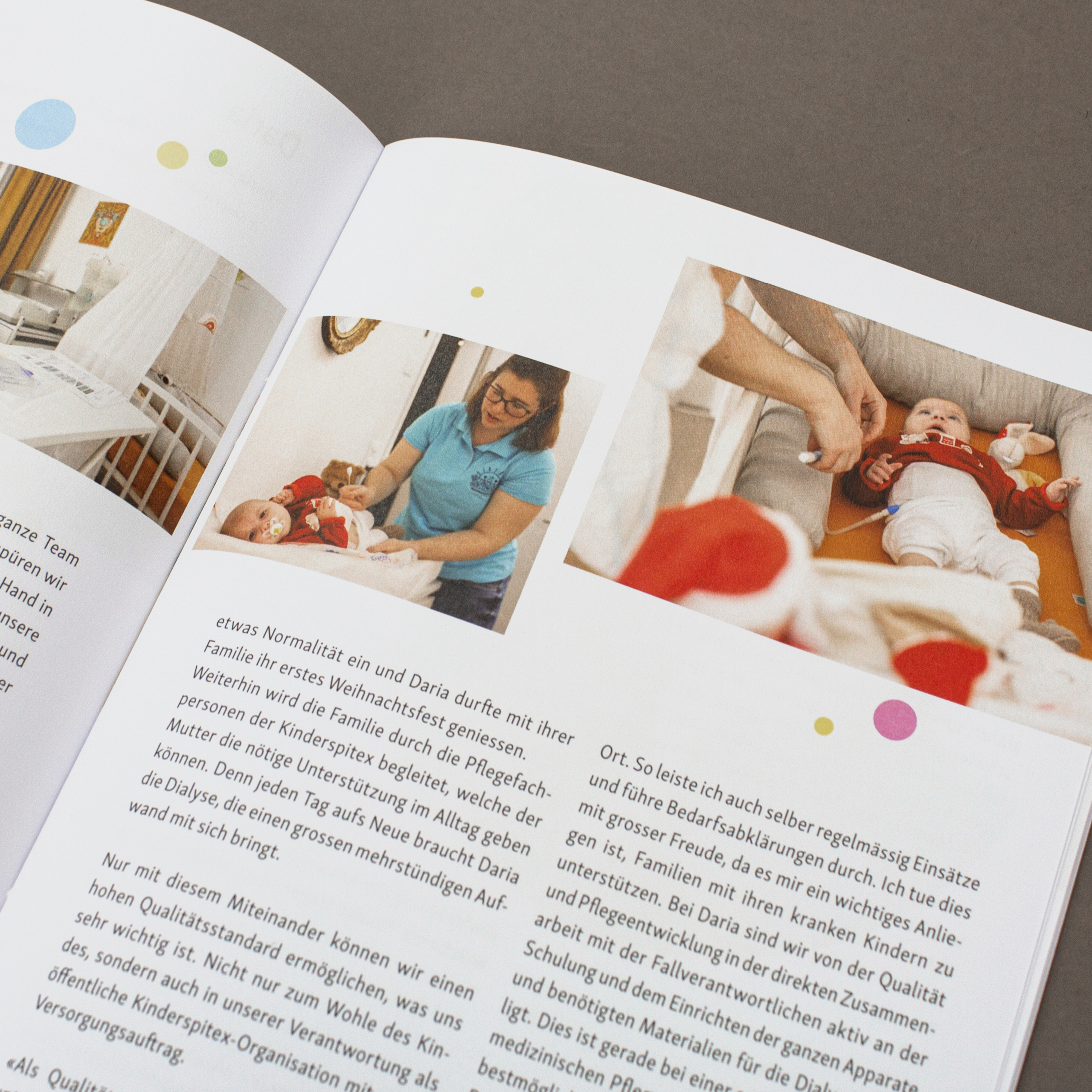 Der Alltag mit einem kranken Kind ist von grossen Herausforderungen geprägt. Dieser Jahresbericht gibt mit Erlebnissen aus dem Kinderspitex-Alltag einen Einblick in das Leben der Familien mit einem kranken Kind. Er zeigt, wie engagiert und mit wie viel Kraft die Familien den besonderen Alltag bewältigen. Zugleich macht der Bericht deutlich, wie wertvoll und unersetzlich die Pflege durch die Kinderspitex für diese Kinder und ihre Angehörigen ist.