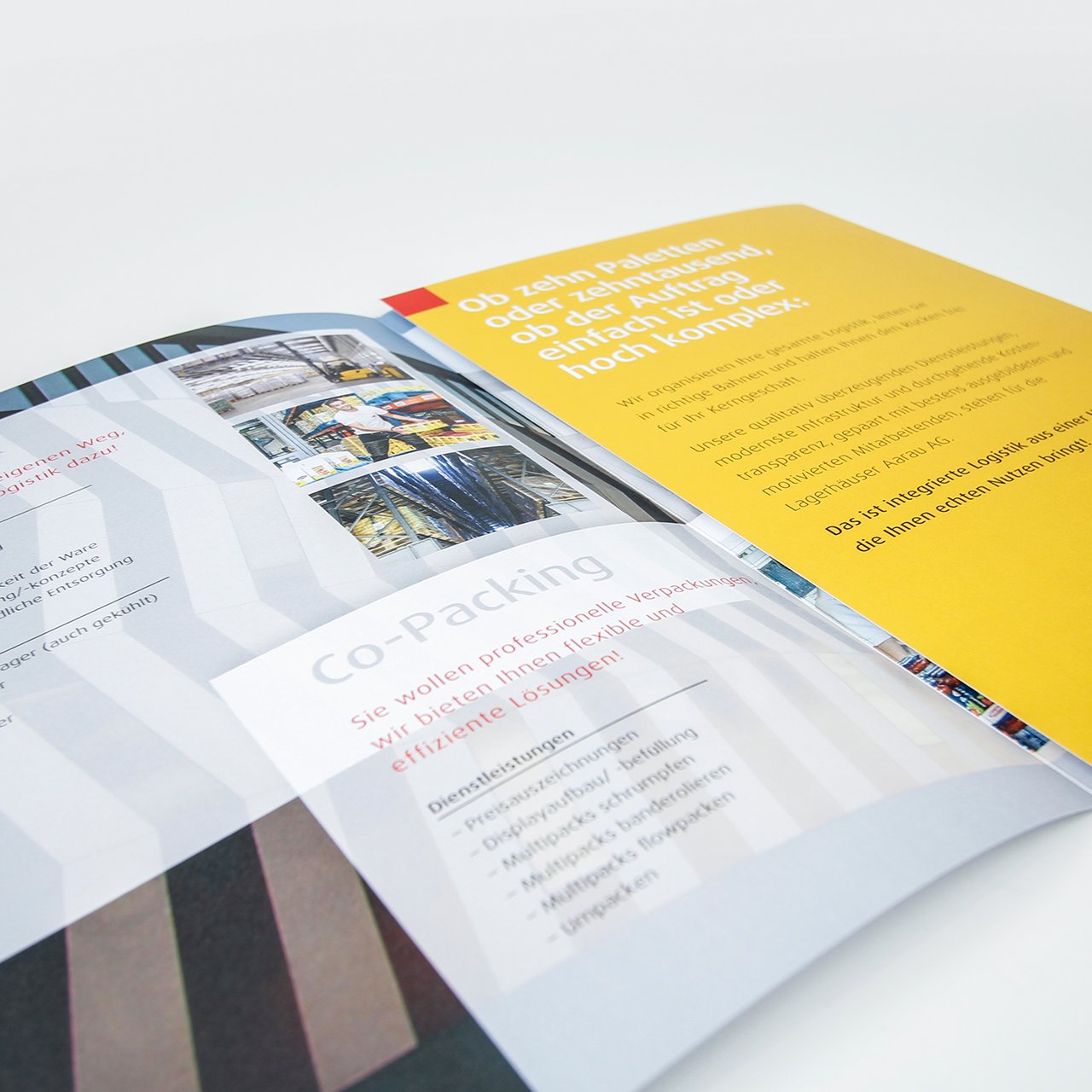 Ganz nach dem Motto der Lagerhäuser Aarau AG: «Alles aus einer Hand», gilt dies auch beim neu konzipierten Unternehmensfolder. Nebst der Gestaltung, bestand unsere Aufgabe darin, die Inhalte festzulegen und zu strukturieren.