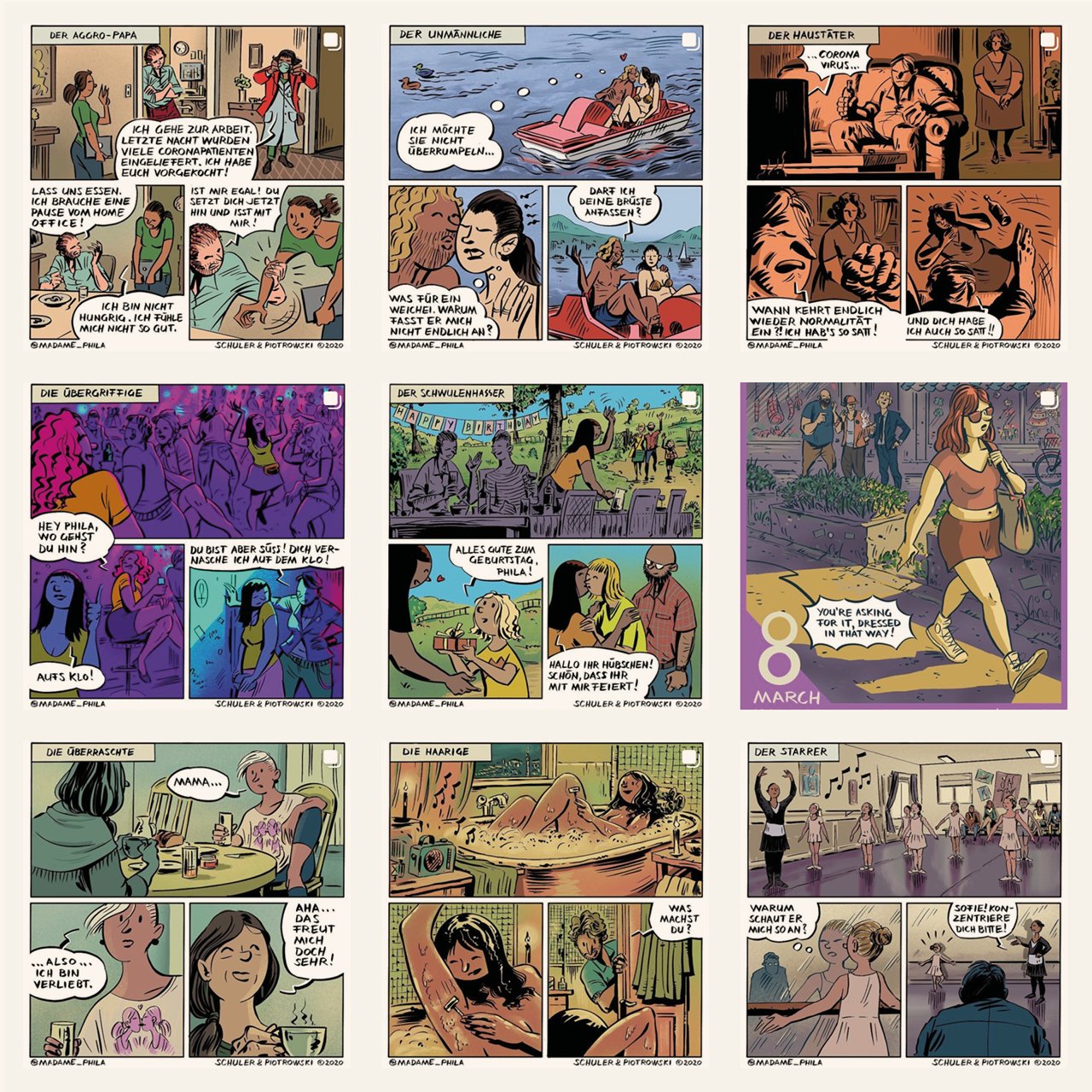 Seit Anfang 2019, und besonders im Kontext des Frauen*streiks am 14. Juni 2019, verarbeitet das Duo Madame Phila in kurzen Comicstrips wahre Geschichten rund um die Themen Sexismus, Gleichberechtigung, Sexualität, sexualisierte und partnerschaftliche Gewalt, Partnerschaft und Aktivismus. Die Comics basieren auf Einsendungen, anonymen Erzählungen ihrer Follower, aus dem Freundes- und Bekanntenkreis oder eigenen Erfahrungen und zeichen sich durch eine unverblümte, aber stets respektvolle Darstellung aus.