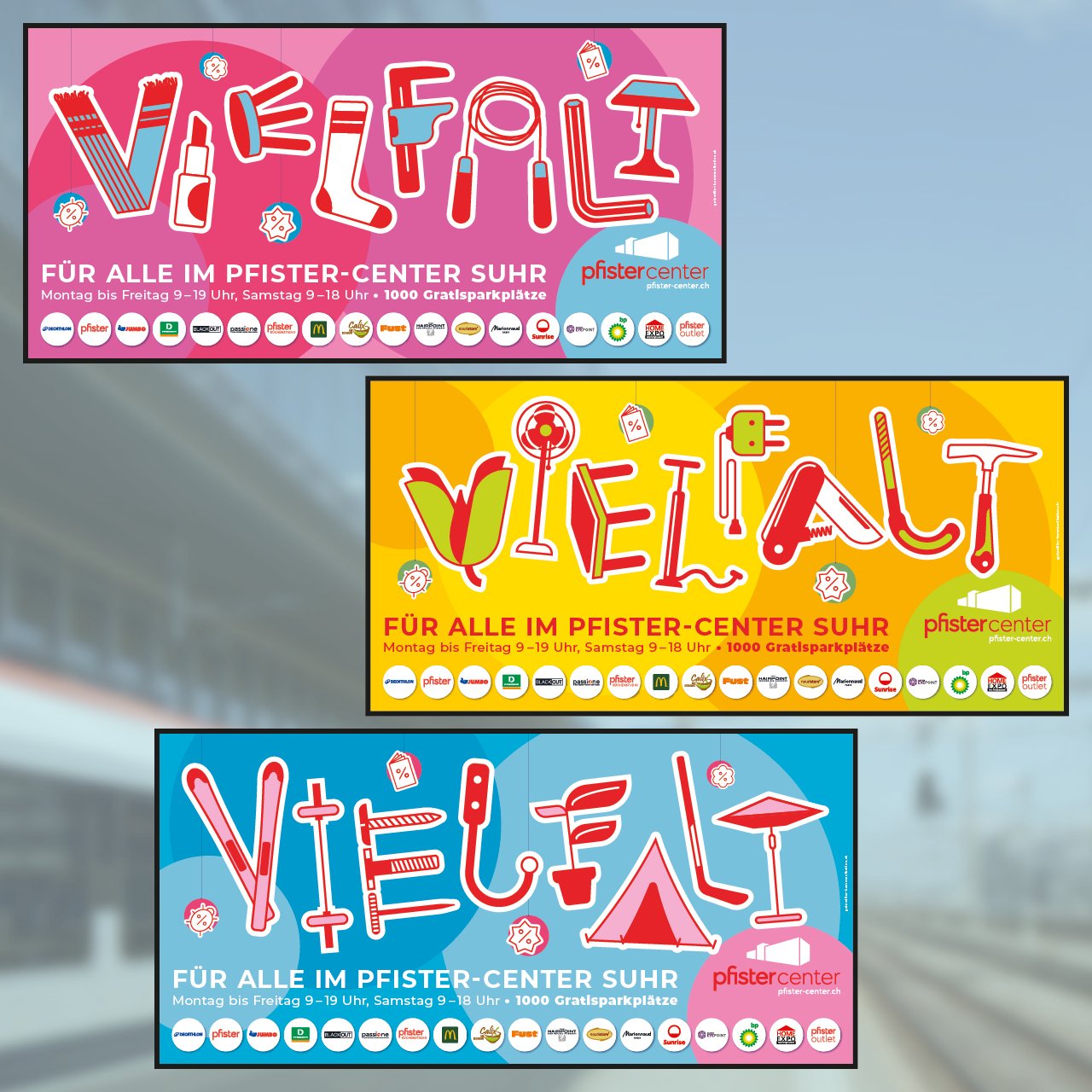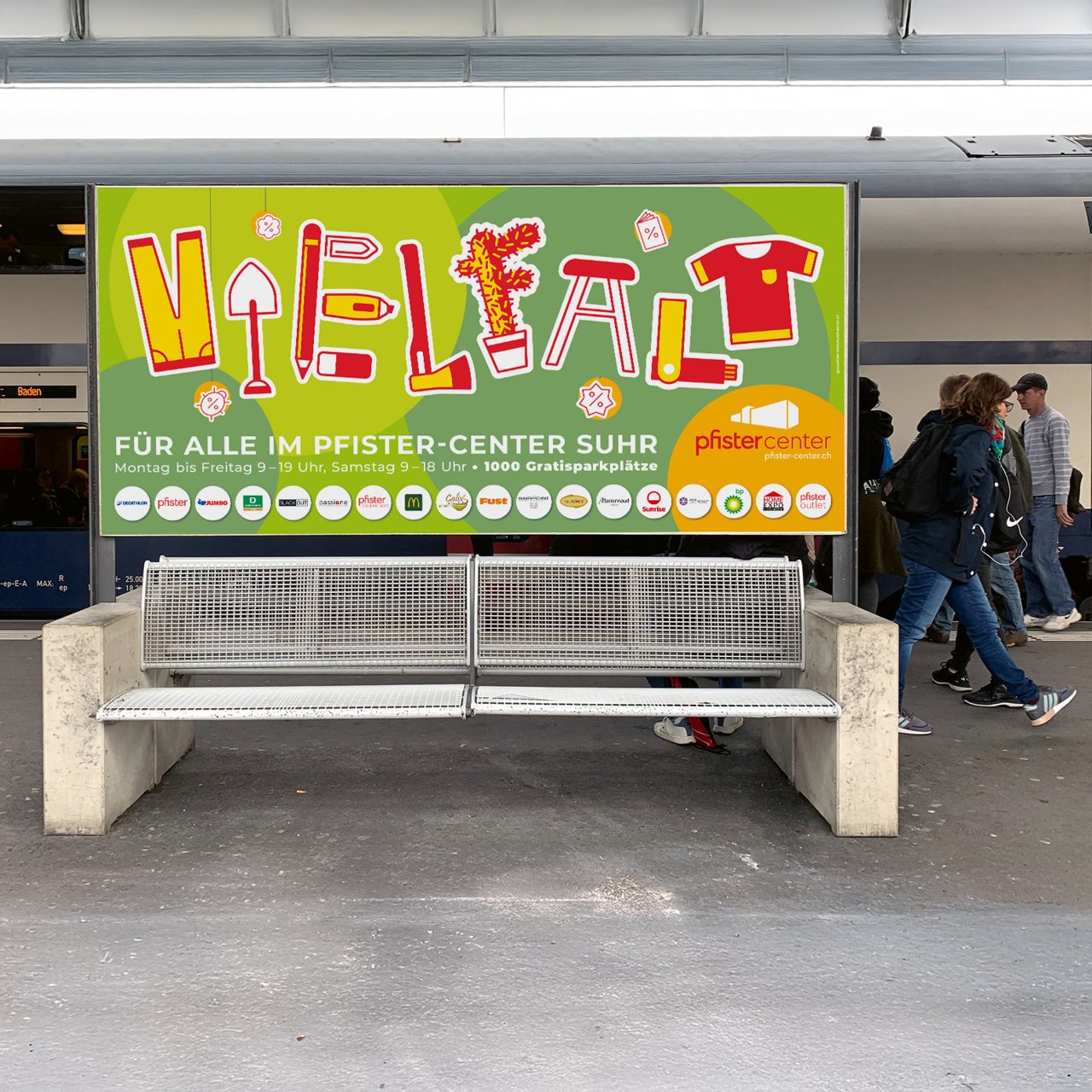 Pfister ließ sein Erscheinungsbild inklusive Logo im Jahr 2024 von der Hamburger Werbeagentur Vasataschröder modernisieren. Da wir das Pfister Center in Suhr gestalterisch bereits seit vielen Jahren begleiten, musste auch dieser Auftritt an das neue Corporate Design angepasst werden. Dabei hatten wir einen relativ großen gestalterischen Spielraum, da das Center autonom auftritt und auch andere Geschäfte beherbergt. Der neue Launch bot zudem eine ideale Gelegenheit, den in die Jahre gekommenen Auftritt punktuell zu überarbeiten. Eine deutlich erweiterte Farbwelt sowie eine neue Schrift- und Bildwelt konnten wir in die bestehenden Maßnahmen integrieren. Das Ergebnis: ein zugänglicherer, frischerer Look mit hohem Wiedererkennungswert.