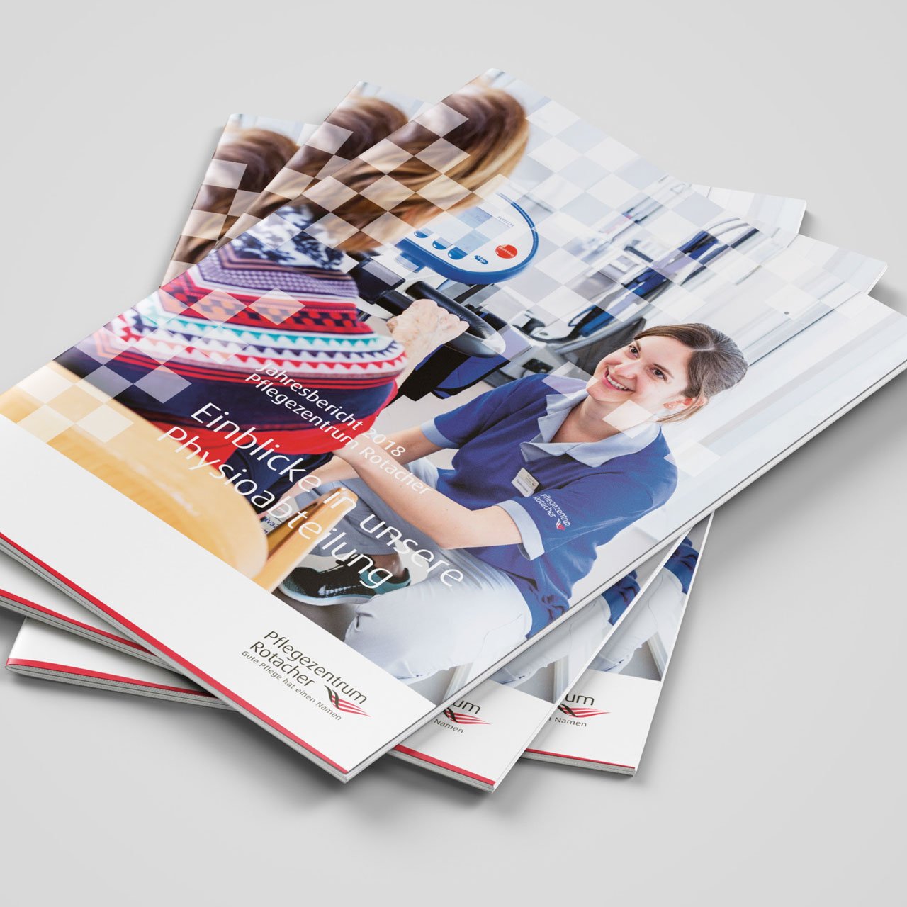 Seit 2012 kreieren wir die Geschäftsberichte für das Pflegezentrum Rotacher in Dietlikon. Dabei sind wir verantwortlich für Konzept, Gestaltung und Realisation. Jedes Jahr steht dabei ein Themenschwerpunkt im Zentrum.