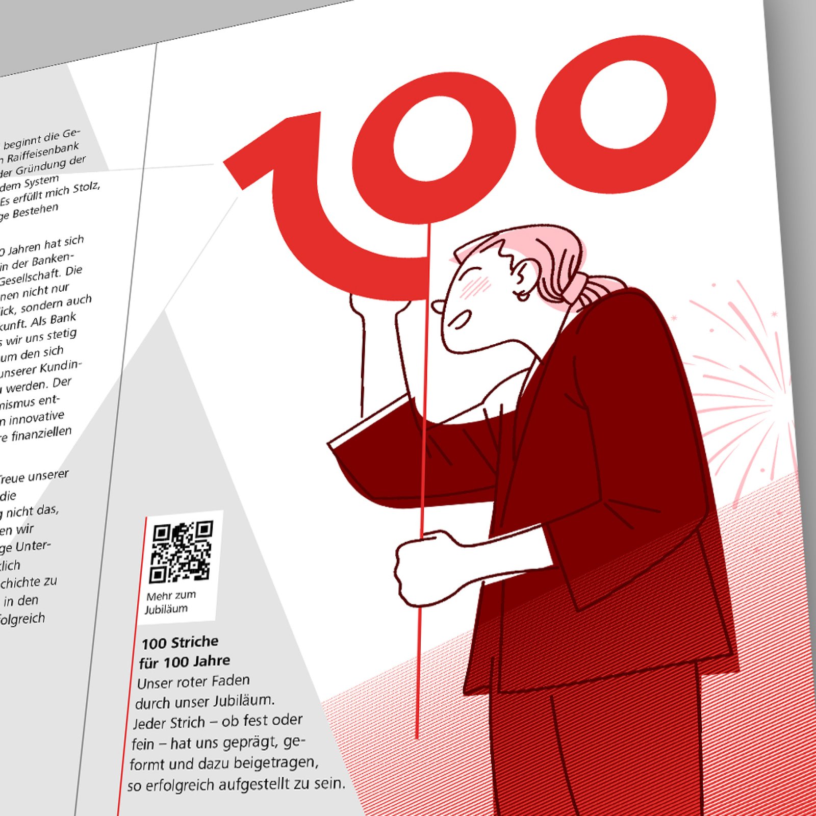 Jubiläums-Branding zu gestalten und die Bank in verschiedenen kommunikativen Maßnahmen zu unterstützen.