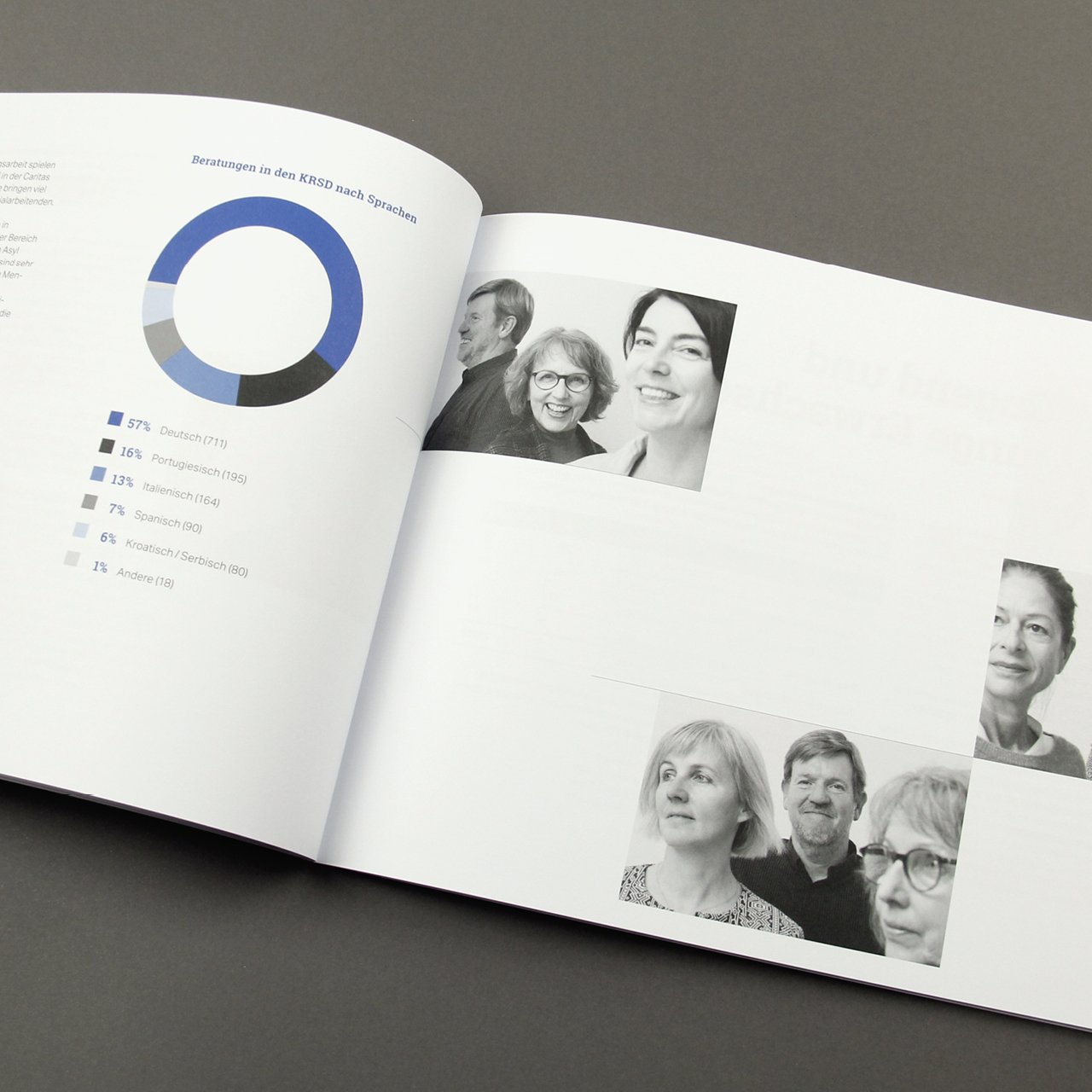 Die neue Typografie sowie das wechselhafte Spiel der Aufnahmen geben dem aktuellen Geschäftsbericht eine leichte und frische Note. Im Format und in der Farbgebung bleibt sich die diesjährige Ausgabe treu und reiht sich in die bestehende Serie harmonisch ein.