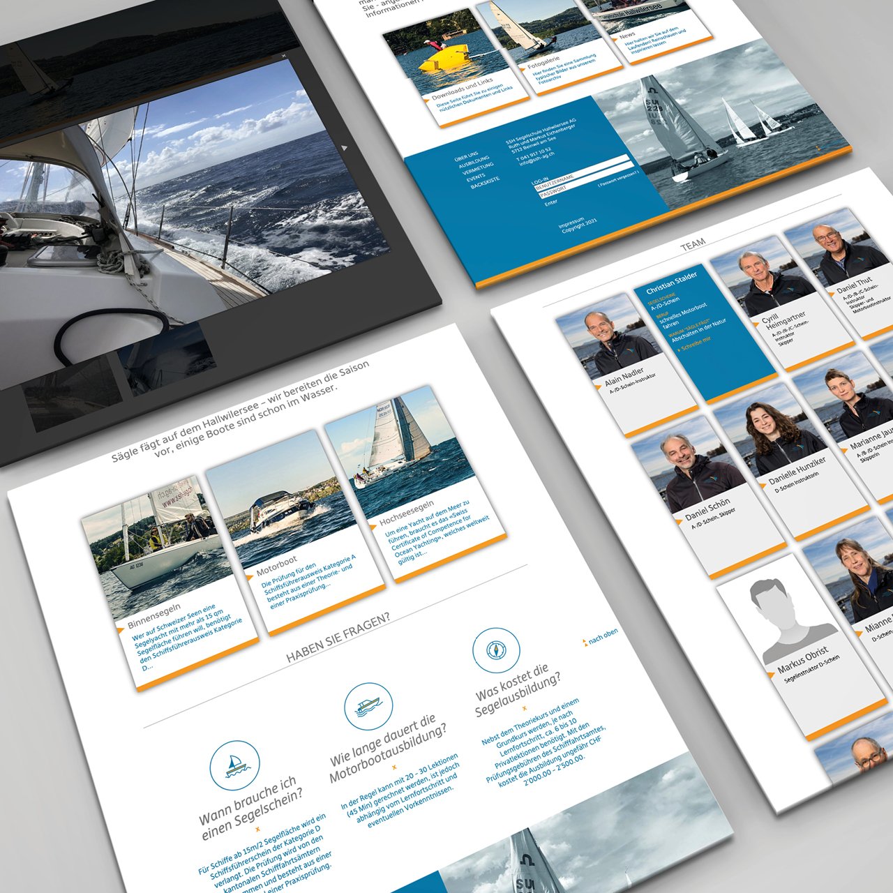 Als wir im ersten Schritt das Corporate Design der Segelschule neu gestalteten, lief synchron die Konzeption der neuen Website – allen voran die Sichtung und Neugliederung der Inhalte und die bestehende Datenbank der Schüler*innen, welche neu auch mobil funktionieren musste. Herausgekommen ist optisch eine leichte und bildlastige Website mit klar strukturierten Angeboten und Kursen.