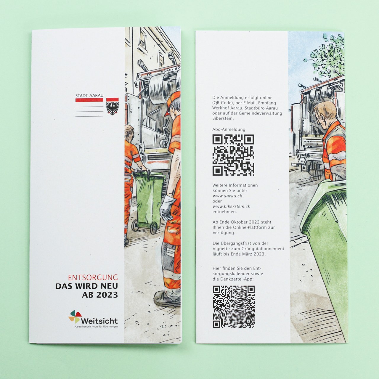Nicht nur die Organisation der Entsorgung wird 2023 neu, sondern auch der dazugehörige und von uns illustrierte und gestaltete Flyer.
