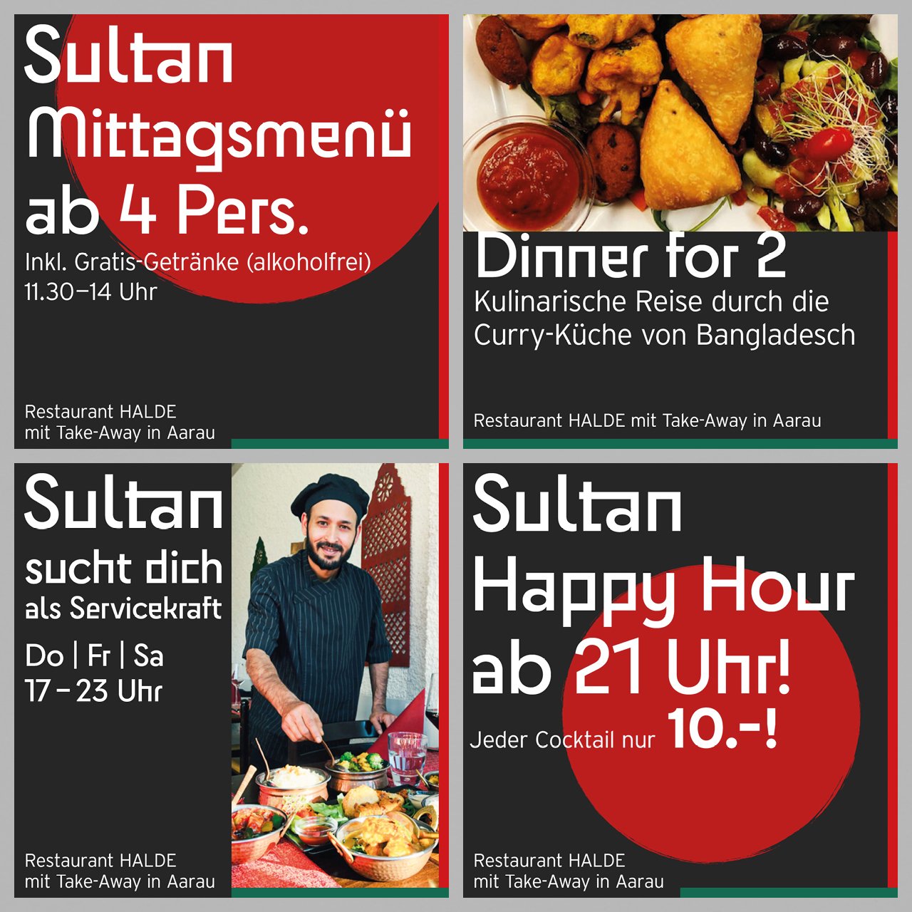 Unser Freund und leidenschaftlicher Koch Sultan (aus Bangladesch) führt seit Ende 2018 das traditionsreiche Restaurant Halde in Aarau. Dort serviert er Gerichte, die er, seine Frau und sein Team nach traditionellen bengalischen Familienrezepten zubereiten. Weil aber sein visueller Auftritt weder vor Ort noch in den digitalen Medien mit seiner authentischen Art und der köstlichen Küche übereinstimmt, haben wir uns entschlossen, Sultan beim Erscheinungsbild zu unterstützen und ihn in einem passenden und eigenständigen Corporate Design zu repräsentieren.