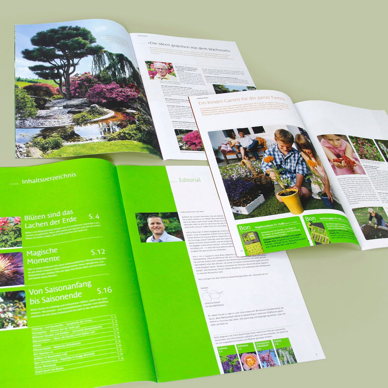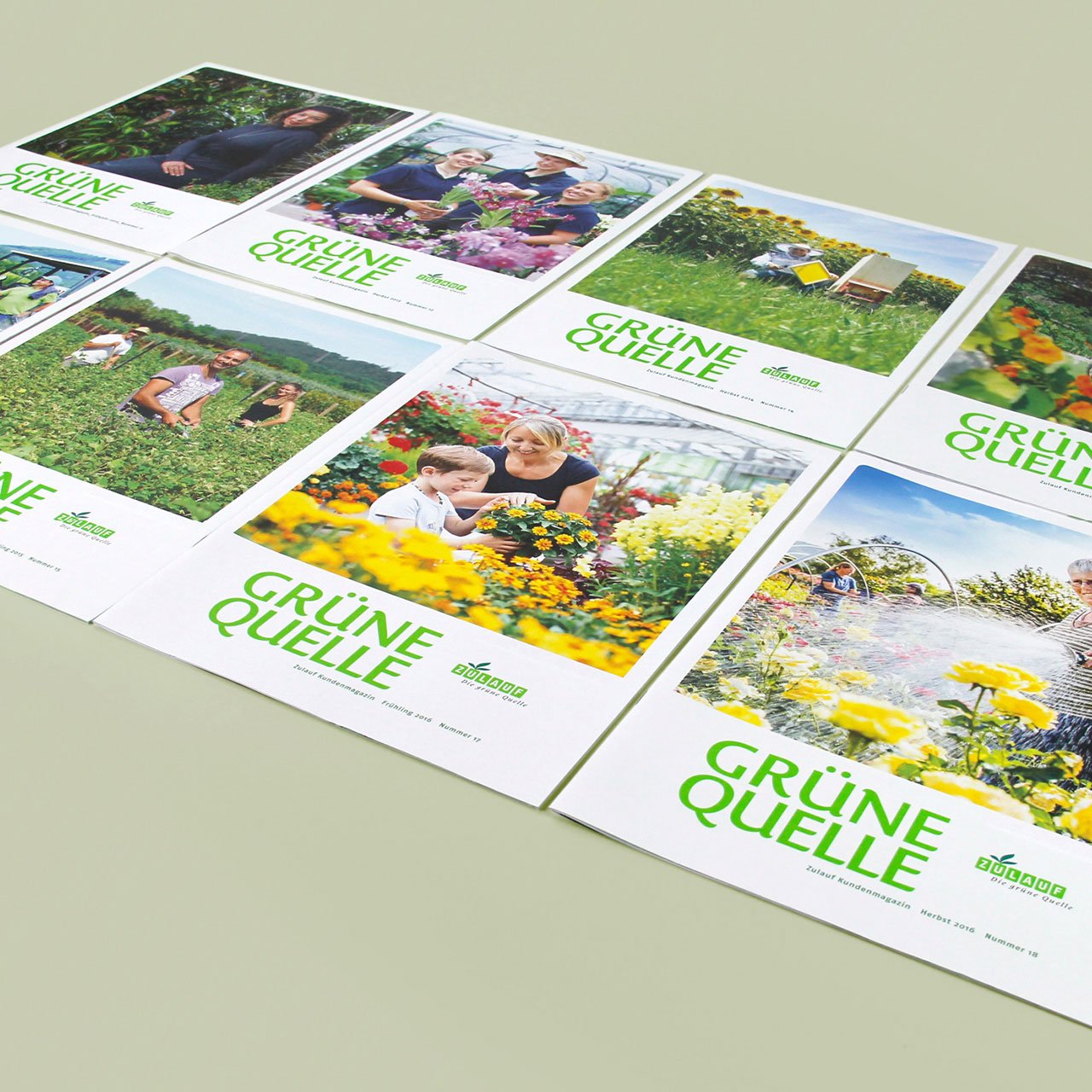 Das überarbeitete Corporate Design, welches wir für Zulauf entwickelt haben, adaptierten wir 2014 auch für die komplett neu konzipierte «Grüne Quelle», das 2x jährlich erscheinende Zulauf-Kundenmagazin. Das 24-seitige Magazin im Format B4, welches eine Fülle an Informationen, Tipps und Anregungen rund um den Garten bietet, verantworteten wir bis Ende 2017.